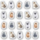 Cinq groupes de quatre chats adorables = Vingt autocollants.