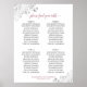 Ce beau tableau de sièges mariage de 4 tables comprend des assignations de table pour 40 personnes, avec 10 personnes à chaque table. Le design est simple mais élégant avec du rose gris et poussiéreux ou du texte rose mauve sur un arrière - plan blanc et présente une filigree florale dentée dans les coins et un titre de calligraphie de script fantaisie lisant "s'il vous plaît trouver votre table." Sophistiqué et chic.