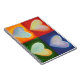 "Quatre Coeurs d'Amour". Peinture de quatre coeurs blancs dans des rectangles rouges, bleus, verts et jaunes qui se croisent tous comme l'amour de sources multiples se rassemblent mais aussi être séparés. Les liens du coeur de l'amour nous rassemblent dans la joie et les célébrations. C'est aussi de l'amour pour renforcer nos âmes pour les défis de la vie. Faites des coeurs d'amour spéciaux des tampons d'écriture, des journaux ou des carnets personnalisés! Vous pouvez personnaliser ce journal d'amour du coeur inspirant avec votre propre message et images en utilisant l'option "Customiser". Fait pour les grands coeurs d'amour des cadeaux carnets! Les bénéfices de cette vente soutiennent l'association à but non lucratif 501(c)3 DonnaBellas Angels. DonnaBellas Angels est une association à but non lucratif dont la mission est de fournir au public un art inspirant sur le thème de la guérison. Pour en savoir plus, consultez le site donnabellasangels.org.
