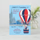 Invitation tes invités à la fête d'anniversaire du 4 juillet de ton garçon avec cette jolie illustration originale ! Il est lumineux plein et coloré ! Cette invitation de fête d'anniversaire de l'Indépendance est facilement customisée pour votre événement en ajoutant vos détails. A l'avant, il y a un garçon avec un drapeau américain. Il profite d'un tour en montgolfière. Il porte un t-shirt avec étoiles et rayures. Une étoile rouge, blanche et bleue se trouve au fond de cette invitation. Idéal pour un petit garçon né à cette date historique et une fête sur le thème du 4 juillet.
