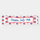 Cette bannière de vacances du 4 Juillet est présentée dans le style extérieur, Select de intérieur ou extérieur, avec ou sans grommets. Montré dans un drapeau patriotique étoiles imprimé avec le texte du 4 juillet heureux en bleu. Customisez ou achetez comme prévu. Image stock