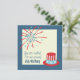 Amusant et charmant 4 juillet Feu d'artifice Invitation avec une frontière bleu foncé audacieuse, feux d'artifice colorés vibrants et un casquette patriotique. Ce superbe design est un excellent choix pour votre prochaine fête de l'Indépendance. Facile à customiser, ajoutez simplement les détails de votre fabuleux rassemblement du 4 juillet dans les champs fournis.