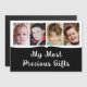 Célébrez les moments les plus doux de la vie avec cette carte magnétique personnalisée de 7" x 5" ! Parfait pour votre réfrigérateur, votre planche de bureau ou toute surface magnétique, c’est une façon élégante de présenter quatre de vos photos préférées - famille, amis, animaux de compagnie ou souvenirs de voyage. Avec un design noir et blanc, vos images apparaissent alors que le support magnétique robuste le maintient en place. Ajoutez vos propres mots de coeur ou une légende ludique pour une touche vraiment personnelle. Un grand souvenir, un cadeau ou une surprise juste-parce que qui vous fera sourire à chaque fois que vous le verrez.