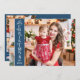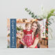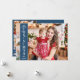 Carte de voeux de vacances moderne avec une photo personnalisable à fond de saignée sur le devant avec une bande de couverture verticale bleue sur la gauche, en soulignant la mention "Joyeux Noël" en blanc. Vous pouvez télécharger trois autres photos de votre famille préférée et votre message de voeux personnel au verso de la carte.