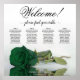 Ce magnifique tableau de sièges mariages comporte quatre tables de 10 places par table, pour un total de 40 places. Le graphique est orné d'un design sophistiqué et romantique, avec un seul rose à long tige dans une riche couleur vert émeraude profonde, reposant délicatement sur son côté et projetant un reflet dans un bassin d'eau serein. Le titre du tableau, écrit en calligraphie de script gracieux, accueille chaleureusement les invités avec "Bienvenue! S'il vous plaît trouver votre table" tout en laissant suffisamment d'espace ci-dessous pour les noms du couple et la date mariage. Cet élégant tableau de sièges est un moyen charmant et pratique d'accueillir et d'aider vos invités à trouver leurs sièges désignés à votre réception de mariage.
