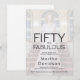 Minimal modern Fifty and Fabulous photo overlay black text 50th birthday invitation that you can personalize and send out for your fiftieth birthday party celebration. The words "Fifty and Fabulous" are set using trending font typography. The opacity of your uploaded photo and the text colors can be changed using the edit menu.