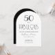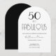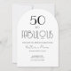 50th birthday celebration invitation you can personalize and send out for your fiftieth birthday party celebration. The words "50 and Fabulous" are set using popular typography. Elegant black script.