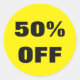50% de rabais autocollants pour les promotions de vente en magasin. Étiquettes de rabais promotionnels ronds brillants pour les entreprises. Ajoutez votre propre valeur de pourcentage personnalisée et des couleurs arrière - plans. do-it-yourself matériel de marketing pour les magasins, l'entreprise, les points de vente, les événements, les offres spéciales, l'envoi de promo, les escompteurs, etc. Exemple jaune et noir. Aussi pratique comme scellés d'enveloppe.