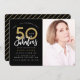 Célébrez votre 50e anniversaire en style avec cet effet noir et or 50 et de fabuleuses invitations photos de fête d'anniversaire. Un design moderne avec texte de script et graphismes en gras. Modifiez la couleur pour la customiser. Partie d'une collection.