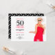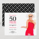 Une belle invitation photo moderne à 50ème anniversaire que vous pouvez personnaliser et envoyer pour vous célébration de cinquantième anniversaire. Les mots "50 and Fabulous" sont définis à l'aide de la typographie populaire. Remplacez l'exemple de photo par le vôtre. Les couleurs de texte rouge et noir peuvent être modifiées à l'aide du menu d'édition. Un chevron noir et blanc orne le dos de la carte. D'autres couleurs et motif sont disponibles.