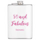 Ce flacon moderne et minimaliste rose 50 et fabuleux fait un cadeau merveilleux et amusant pour une fête de 50e anniversaire d'un ami, d'un membre de la famille, d'un collègue, d'un enseignant ou de n'importe qui qui aime boire un verre de temps en temps. Faites-lui sourire avec ce cadeau élégant avec une formulation contemporaine rose. Vous pouvez le personnaliser avec le nom de la fille d'anniversaire. Prost !