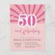 Apportez une ambiance rose rétro branchée pour sa fête de 50 ans avec ces invitations vibrantes. Facile à customiser avec tous les détails de la célébration et mettant en vedette la typographie vintage mignonne. Texte : "50 et fabuleux ! Rejoignez les célébrations pour (nom) anniversaire".