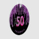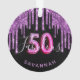 Un ornement tendance et glamour de 50ème anniversaire. Un arrière - plan noir classique décoré avec des gouttes de parties scintillant couleur violet foncé, la peinture goutte à goutte. Avec le texte : 50 Fabuleux. Personnalisez et ajoutez un nom. Texte de couleur violette. Le mot Fabulous est écrit avec un script de style moderne écrit à la main. Le numéro 50 est écrit avec une police de style ballon moderne. Parfait comme un cadeau, un service de fête ou comme décoration de table de fête.