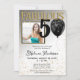 Célébrez l'anniversaire du cinquantième anniversaire avec cette élégante et glamour invitation d'anniversaire noir et or. Orné d'un ballon de parties scintillant en noir et d'une goutte de parties scintillant d'or. Personnalisez-le pour ajouter vos propres informations et photo spéciale. Des assiettes, serviettes et autres pièces sont également disponibles sur Simply Farmhouse Press sur Zazzle.