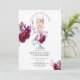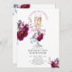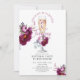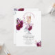 50 et fabuleuse invitation à la fête d'anniversaire de la parties scintillant d'argent agate bleue avec une coupe de champagne aux fleurs roses et bordeaux. Élégant et joli.