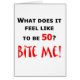 Comme quoi se sent-elle pour être 50 ? Mordez-moi ! Conception humoristique pour 50 ans qui n'est pas heureuse au sujet de tourner 50 et un panneau d'avertissement pour d'autres. Fait un grand cinquantième cadeau d'anniversaire.