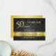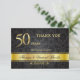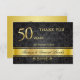 50ème anniversaire de Mariage Carte de remerciements avec des tourbillons de couleur dorée sur un arrière - plan noir damassé.