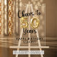 Célébrez un 50e anniversaire avec un signe de bienvenue imprimé sur acrylique avec le titre CHEERS TO 50 YEARS avec des numéros de ballon d'or faux métallique et typographie de script moderne, confetti et votre message personnalisé dans votre choix de texte et de couleurs graphiques (montré en noir). OPTIONS : L'échantillon est présenté dans une taille de 18x24"; d'autres tailles sont disponibles. ASSISTANCE : Pour obtenir de l'aide sur la modification ou la personnalisation de la conception, le redimensionnement ou le transfert de la conception à un autre produit, contactez le concepteur AVANT DE COMMANDER via l'onglet MESSAGE Conversation Zazzle ci-dessous ou envoyez un courriel à makeitaboutyoustore@gmail.com.