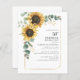 Eucalyptus Sunflower Script 50th Birthday Invitation vous pouvez facilement customiser avec les détails de votre fête en cliquant sur le bouton "Personnaliser". Avec un cadre géométrique en feuille d'or et une typographie moderne, il est succulent et jaune vif.