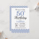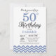 50e anniversaire Invitation avec Blue Chevron. Noir et Blanc. Anniversaire adulte. Invitation Anniversaire homme ou femme.