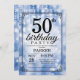 50e anniversaire Invitation à cordes bleues avec Arrière - plan à Parties scintillant bleue. Anniversaire bleu. Anniversaire adulte. Hommes ou femmes Anniversaire Invitation. 13e 15e 16e 18e 20e 21e 30e 40e 50e 60e 70e 80e 90e 100e, n'importe quel âge. Pour plus de personnalisation, cliquez sur le bouton "Customiser" et utilisez notre outil de conception pour modifier ce modèle.