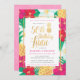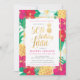Pink & or 50e anniversaire invitations luau avec plaisir, jolies fleurs tropicales et ananas, avec des accents or. Idéal pour une soirée luau cinquantième anniversaire !