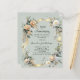Un arrière - plan vert sage. Décoré de fleurs blanches et jaunes et d'un ruban doré. Personnalisez et ajoutez un nom et des détails. 1 feuille = 1 invite imprimé bord à bord.