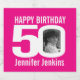 50e anniversaire texte blanc sur papier de fête photo rose chaud mousseux vin ou étiquettes de vin. Idéal pour ajouter une touche personnelle à une fête du cinquantième anniversaire surprise ou pour mettre sur vos tables de fête. Personnalisez avec votre photo de fille d'anniversaire dans le 0 sur 50 et personnalisez avec votre choix de nom. D'autres articles correspondants sont disponibles. Conçu par www.mylittleeden.com