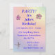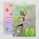 Une belle fée de ballerine dansant sur une invitation à la fête d'anniversaire. La ballerine porte un tutu blanc, et a des traces de fleurs venant de ses cheveux. Elle danse à travers un pré rempli de marguerites.