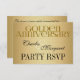 Elégante RSVP pour la fête du 50e anniversaire du couple d'or. Ce design correspond à nos Invitations d'Anniversaire Mariage d'or. Ajoutez des noms à l'avant, éditez RSVP par date à l'arrière. Le couple peut également ajouter des enveloppes de coordination et des messages s'ils choisissent de répondre à nos invitations de soirée.