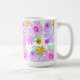 50th birthday pink modern cute floral party mug for 50th birthday celebration party or birthday gift. Colorful romantic floral pink party mug for women's birthday party . 50th birthday personalized tea coffee mug for fifty women, fifty mothers, fifty friends, wifes, grandmother. Cute pretty pink purple yellow elegant chic mug with script, calligraphy, typography , flowers, for a milestone celebration. Add name, text.