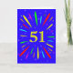 Une carte explosive 51ème anniversaire ! Quelle merveilleuse façon d'envoyer des salutations d'anniversaire. Le numéro 51 en jaune vif avec une explosion de couleurs vives et d'étoiles.
