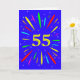 Une carte explosive à 55 ans ! Quelle merveilleuse façon d'envoyer des salutations d'anniversaire. Le chiffre 55 en jaune vif avec une explosion de couleurs vives et d'étoiles.