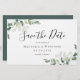 Faites savoir à vos amis et à votre famille que vous avez fixé une date pour votre mariage avec cette belle aquarelle eucalyptus Enregistrer la carte Date.
