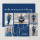 Ajoutez vos cinq photos favorites au recto de ces cartons d'invitation de remise de diplômes avec le mot diplômé en lettrage chic ainsi que votre nom et votre année de promotion. Les détails de votre annonce sont au verso sur fond bleu. PLUS de modèles et de couleurs disponibles dans notre magasin, y compris des invitations de fête, des cartons "save the date" et des cartes postales.