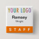 Personnalisez facilement notre badge personnel épinglé carré avec votre logo, nom du personnel ou tout autre texte personnalisé. Il s'attache avec une broche de sécurité. Conçu en orange et autres couleurs (toutes les couleurs sont personnalisables). Nos boutons carrés sont 2 pouces x 2 pouces. Fabriquée aux États-Unis. Pas de quantité minimale de commande et pas de frais de configuration.