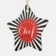 Rayures ou rayures noires cool au centre rouge éclatant avec un chef cinq étoiles devant et derrière ce décor culinaire de sapin de Noël pour votre chef, cuisinier ou chef préféré.