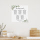 Cet élégant tableau de 5 places comprend des assignations de table pour 50 personnes avec 10 places par table. Le design bohème chic rustique présente des feuilles d'eucalyptus peints à la main et des feuillages dans les tons menthe, mousse et vert sauge. Le titre de calligraphie du script de dentelle dit : Veuillez trouver votre table, et les noms du couple et de la date mariage apparaissent en bas.