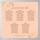 Ce tableau de sièges mariage de 5 tables aidera vos invités à trouver la bonne table à votre réception. Le design est à la fois simple et élégant avec du texte doré sur un arrière - plan couleur orange clair ou corail pêche et des filigree floral dentelle dans les coins. Le titre dit "s'il vous plaît trouvez votre table" dans une élégante calligraphie de script. Sophistiqué et chic. Comprend l'assignation de table pour 50 personnes avec 10 sièges par table.