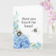 Belle carte de voeux - bee bumble avec hydrangées bleues; vide à l'intérieur, prêt pour votre propre message.