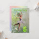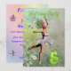 Une belle fée de ballerine dansant sur une invitation à la fête d'anniversaire. La ballerine porte un tutu blanc, et a des traces de fleurs venant de ses cheveux. Elle danse à travers un pré rempli de marguerites.