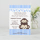5x7 Boy Blue Pop Monkey Baby shower Invitation