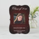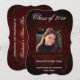 Cette Elégante et gracieuse faire-part de remise de diplômes ou de remise de diplômes de Bourgogne est parfaite pour tous les diplômés de l'université, du lycée ou de tous les niveaux. Design tendance avec arrière - plan tourbillon noir profond avec cadre photo pour votre meilleure photo. Très simple à personnaliser avec vos informations. Pas besoin de photo, il suffit d'ajouter vos informations et photo numérique. Invitation de graduation de style moderne ou classique pour hommes ou femmes.