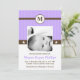 Ces adorables Girl Brown et Purple Striped Monogram Initial PHOTO Faire-part de naissance sont imprimés sur un papier de 110lb de 110lb de format 5x7 lisse, vibrant, mat. Contient 50 % de contenu recyclé. Parfait pour toute invitation de baby shower, nuptiale, bachelorette, mariage ou anniversaire.