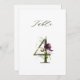 Cette carte de numéro de table présente un numéro vert décoré d'illustrations aquarelles de fleurs et de feuilles en pourpre et vert. Ce numéro de table est parfait pour les mariages, les remises de diplômes, les baby showers, les fêtes de mariage, les anniversaires et autres événements.