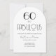 60th birthday celebration invitation you can personalize and send out for your sixtieth birthday party celebration. The words "60 and Fabulous" are set using popular typography. Elegant black script.