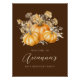 Les élégants citrouilles d'aquarelle orange sont entourés de fleurs d'automne et de feuillage. Le riche arrière - plan foncé le place à la perfection, le rendant parfait pour une fête d'anniversaire d'automne. Disponible sur papier ou en téléchargement numérique.