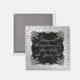 A Digitalbcon Images Design avec un thème platine argenté fière et noir satin avec une variété d'images, de formes, de motifs, de styles et de polices personnalisées dans cet aimant unique Mariage argenté ! Cet aimant attrayant et coloré est livré avec du texte personnalisable qui s'adapte à votre occasion spéciale et est sûr de faire un beau souvenir à l'événement ou un souvenir à la famille et les amis invités à la célébration.