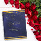 Un 60e anniversaire de fête informelle Livre d'invité pour lui, garçon, gars en bleu foncé, arrière - plan bleu marine. La couleur bleue est inégale. Avec un cadre en faux or et des confettis dorés saupoudrés, des lettres de couleur dorée. Le titre Guest Book est écrit avec un script de style moderne écrit à la main. Modèle pour un nom, 60 ans, date.