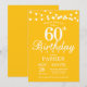 60e Invitation d'anniversaire avec des lampes à cordes. Arrière - plan jaune. Hommes ou femmes Anniversaire. 13e 15e 16e 18e 20e 21e 30e 40e 50e 60e 70e 80e 90e 100e, n'importe quel âge.